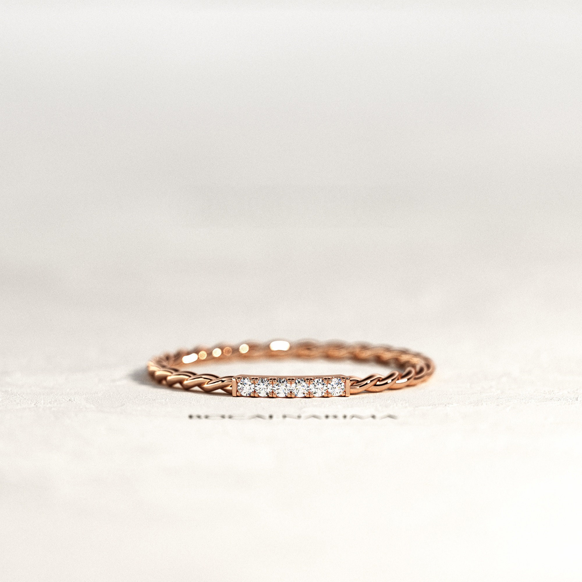Rose gold twisted wedding band.